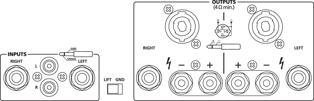 Sinusleistung bei 4-Ω-Brückenbetrieb
